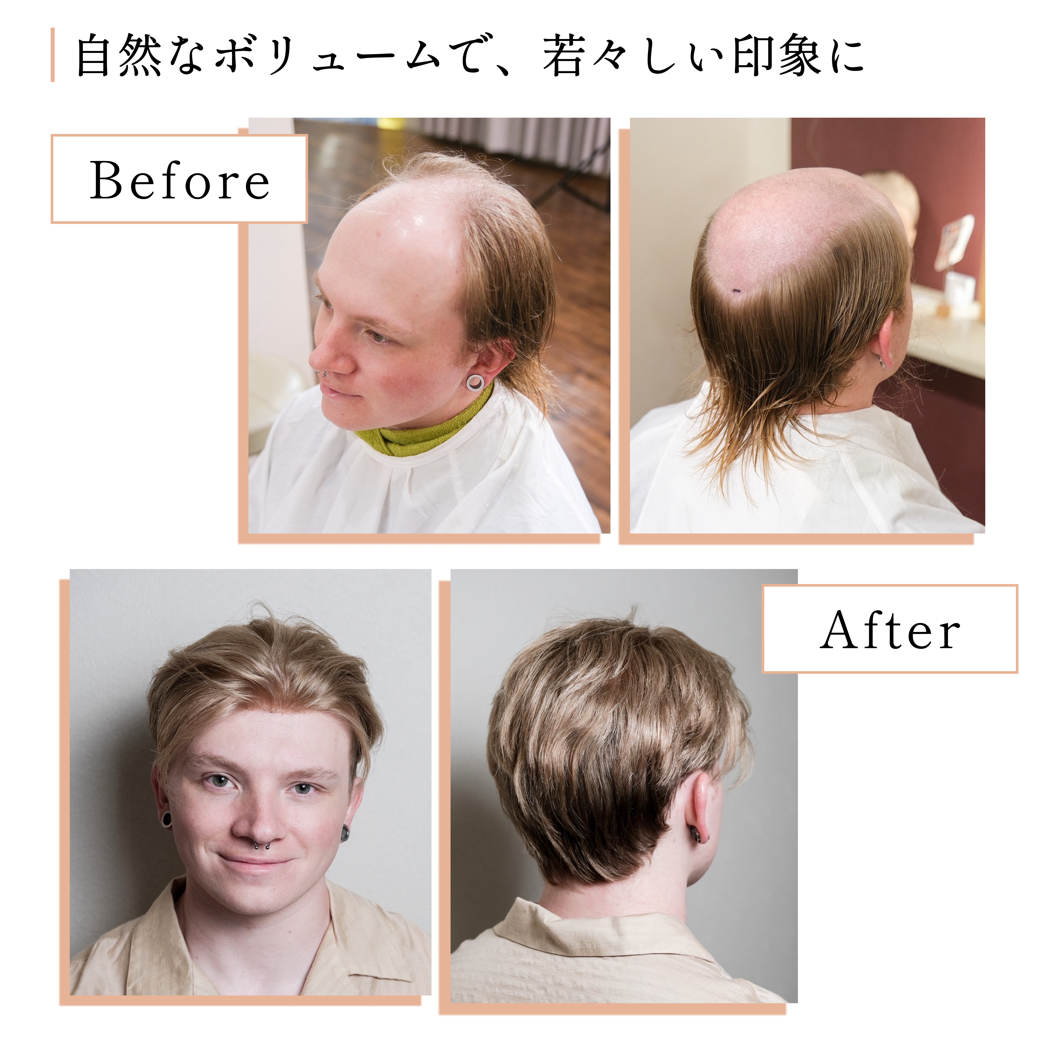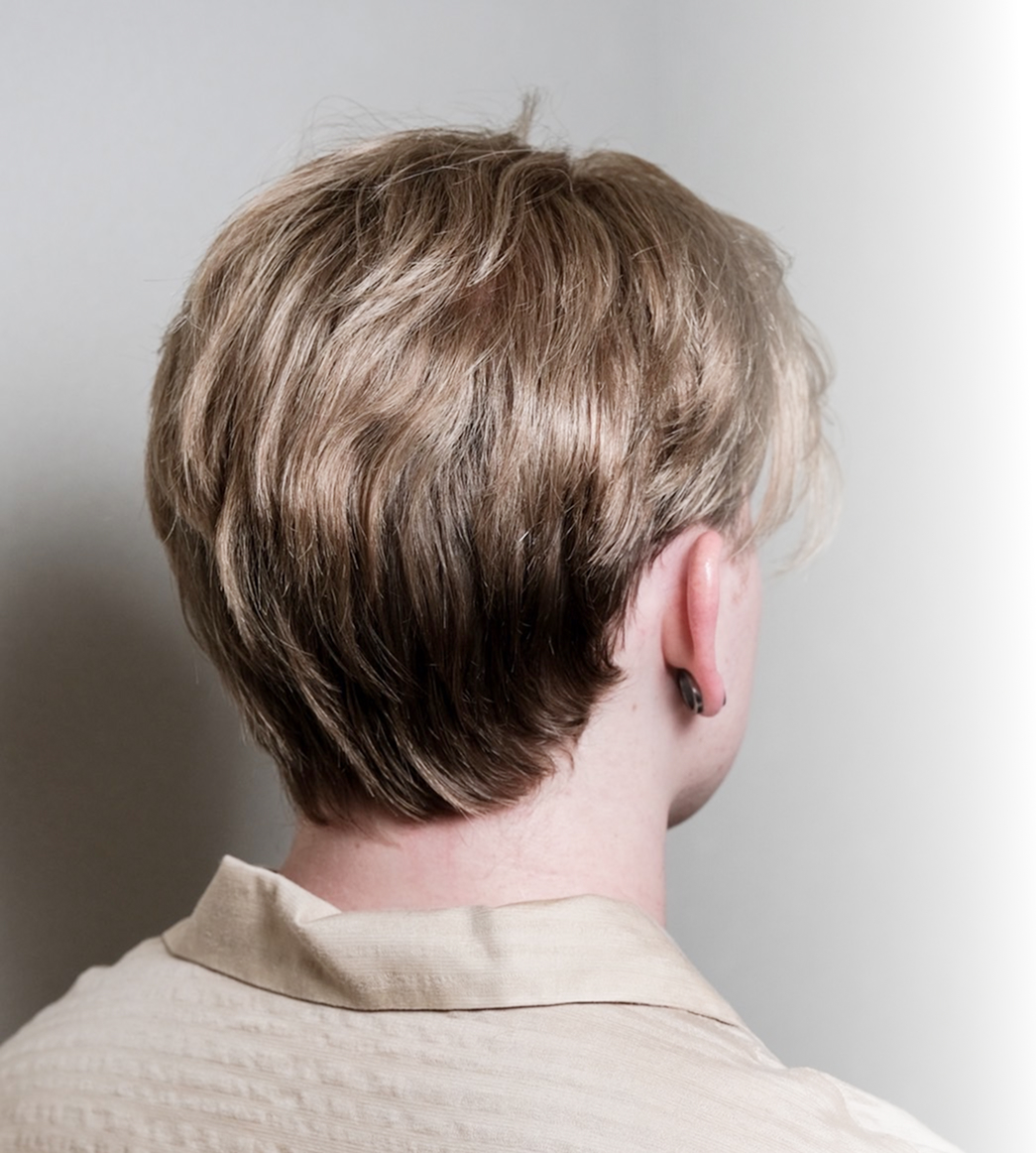 自然なボリュームと髪質で、年齢に合わせたスタイリッシュな印象を実現。気になる部分をカバーしながら、自信を取り戻すサポートをいたします。