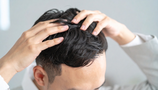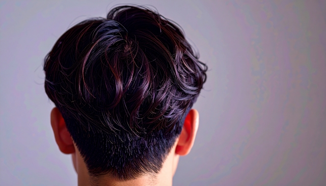 男性の髪型に合わせたデザインで、自然に馴染みながらもスタイリッシュな印象を与えます。