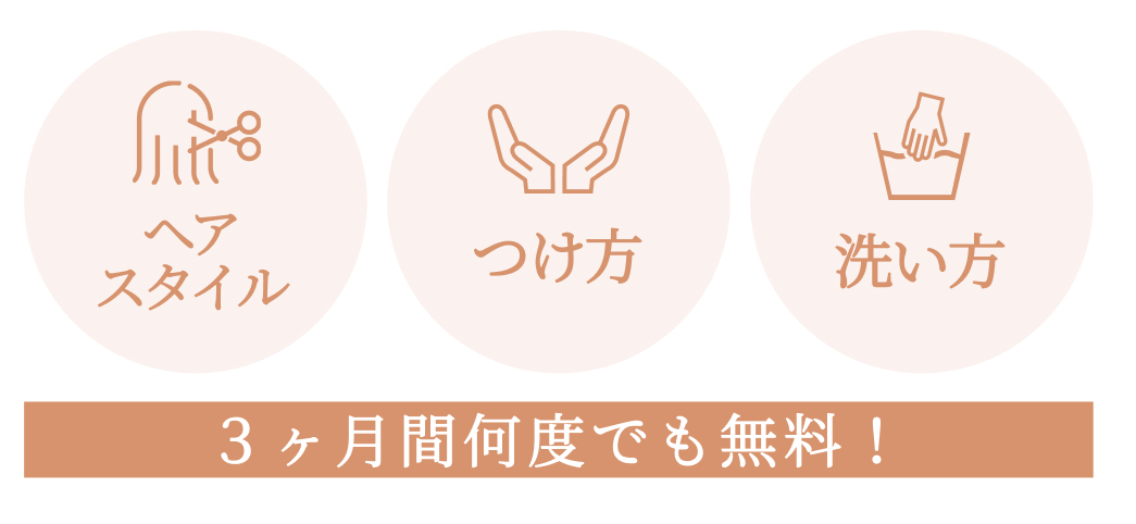 ご購入から3カ月間、ウィッグのスタイル調整やつけ方、ご自宅でのお手入れ方法などのアドバイスが無料で何度でもご利用いただけます。